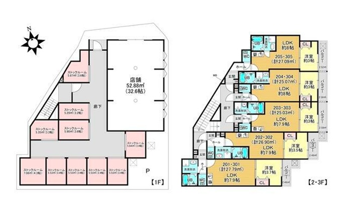 ※店舗×1戸、ストックヤード付き1LDK住戸×10戸
